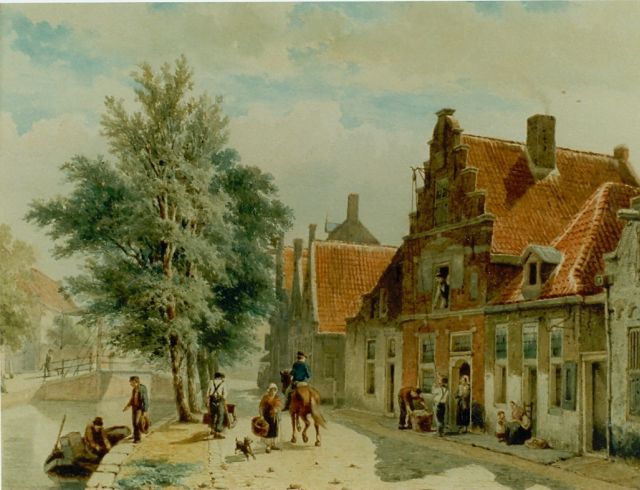 Cornelis Springer | De Burgwal in Haarlem, aquarel op papier, 30,5 x 40,5 cm, gesigneerd r.o. en gedateerd 1843