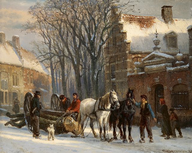 Cornelis Springer | Winters gezicht op Hasselt, olieverf op doek, 46,0 x 62,0 cm, gesigneerd l.o. en gedateerd 1862