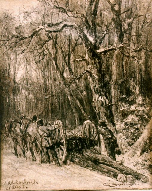 Cornelis Springer | Mallejan in Uddelerbosch, tekening op papier, 25,0 x 20,0 cm, gesigneerd r.o. en gedateerd '80