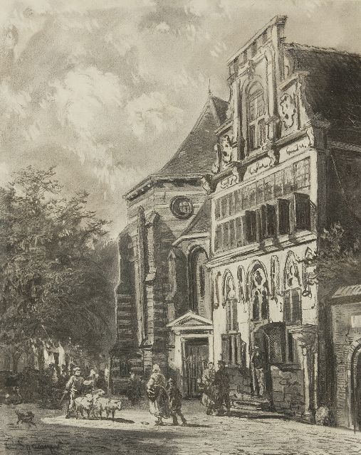 Cornelis Springer | Straatje achter het Stadhuis van Veere, olieverf op paneel, 50,1 x 40,6 cm, gesigneerd r.o. en gedateerd 1858