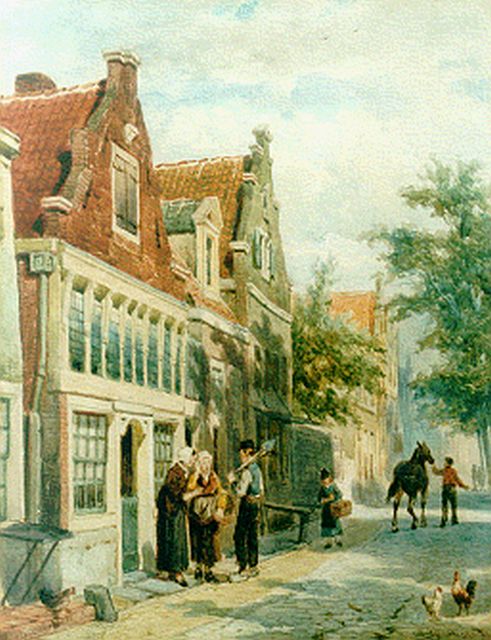 Cornelis Springer | De Grote Poortstraat, hoek Kromhoutsteeg, te Harderwijk, aquarel op papier, 27,0 x 21,6 cm, gesigneerd l.o. en gedateerd 1863