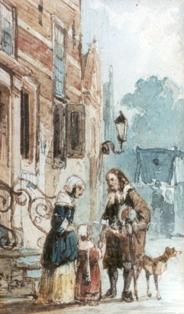Cornelis Springer | In gesprek, aquarel op papier, 7,8 x 5,0 cm, gesigneerd l.o.met monogram en gedateerd 31/12-52