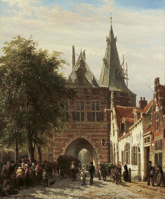 Cornelis Springer | De Cellebroederspoort in Kampen, olieverf op paneel, 51,5 x 42,0 cm, gesigneerd r.o. en gedateerd 1863