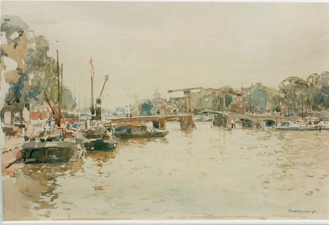 Cornelis Vreedenburgh was grotendeels autodidact. Aanvankelijk werkte hij als huis- en decoratieschilder en tekende en schilderde in zijn vrije tijd, totdat hij zich in 1904 door een Koninklijke subsidie voor veelbelovende jonge kunstenaars helemaal aan de schilderkunst kon wijden. Waardevol waren voor hem de adviezen van de impressionist W.B. Tholen, die hem vaak op zijn boot meenam op de Kaag en de Loosdrechtse plassen. De weide- en watertaferelen die Vreedenburgh schilderde waren direct zeer geliefd door hun sterke kleuren en de treffende manier waarop hij het licht en de atmosfeer van het landschap weergaf. In 1917 vestigde de schilder zich in Laren, op dat moment een levendig kunstenaarsdorp. Vanaf die tijd ontstonden ook veel Amsterdamse stadsgezichten.