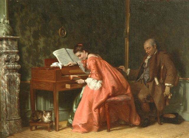 David Bles | De onoplettende leraar, olieverf op paneel, 31,1 x 41,6 cm, gesigneerd r.o.