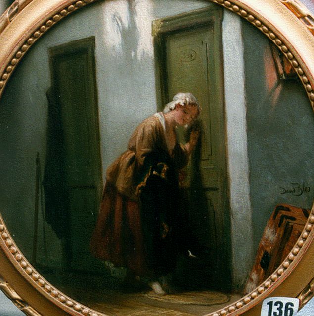 David Bles | Het vroege bezoekje, olieverf op paneel, 26,0 cm, gesigneerd r.o.