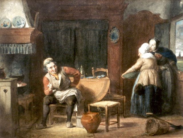 David Bles | De luie keukenmeester, potlood en aquarel op papier, 22,0 x 29,6 cm, gesigneerd l.o.