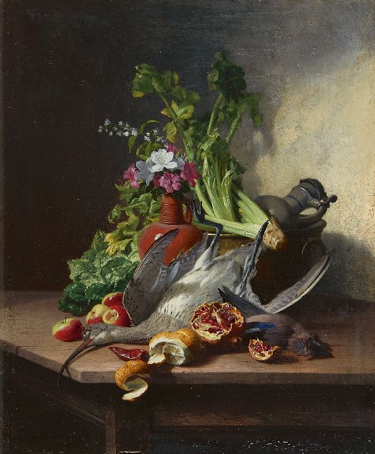 De Belgische David de Noter had een voorkeur voor interieurs, genretaferelen en stillevens met bloemen, vruchten en/of wild. Het vak leerde hij van zijn vader Jean-Baptiste André de Noter, schilder van stadsgezichten en interieurs. In 1840 vestigde hij zich in Brussel; ook verbleef hij regelmatig in Parijs. De Noter werkte samen met de Antwerpenaar Jean Auguste Henri Leys: hij schilderde op een aantal van Leys’ werken de bloemen, groenten of vruchten. En Leys schilderde de figuren op sommige werken van De Noter. Uitbesteding van het inschilderen van mensen, dieren, gebouwen en overige attributen aan een ander was een gebruikelijke werkwijze tot ver in de 19e eeuw. Specialisatie, het zich toeleggen op een bepaald genre binnen de (schilder)kunst, lokte dit gebruik uit: portrettisten, schilders van bloemstukken en stillevens, veeschilders, marinisten en landschapschilders maakten waar nodig gebruik van elkaars specifieke vaardigheden.