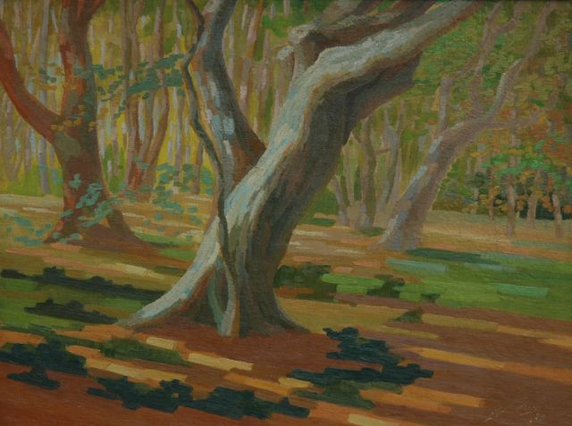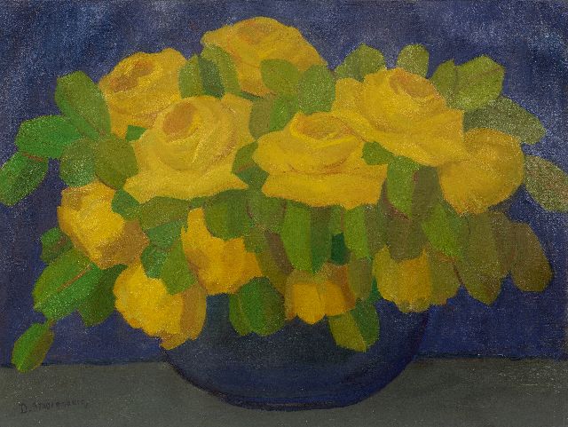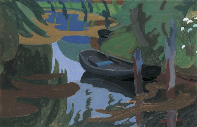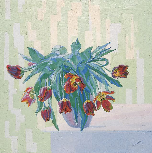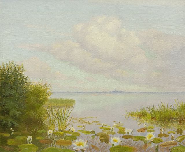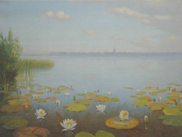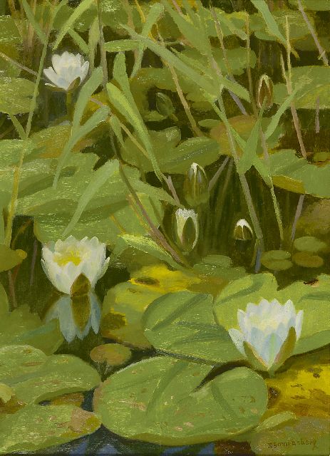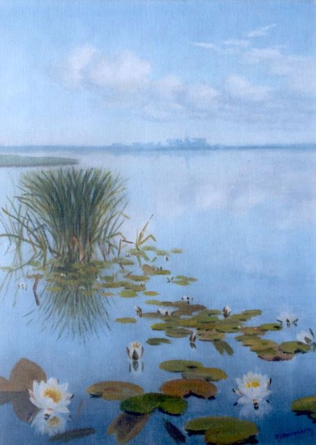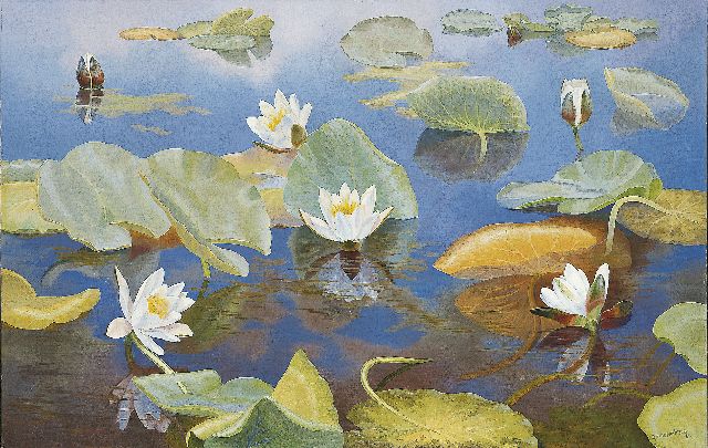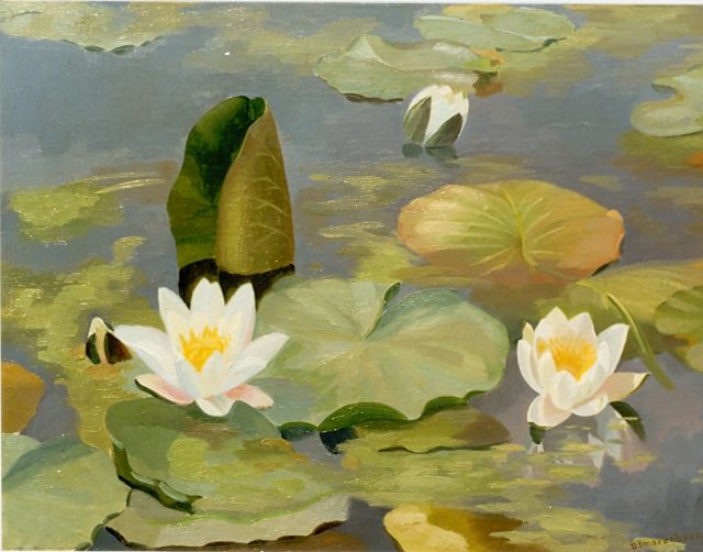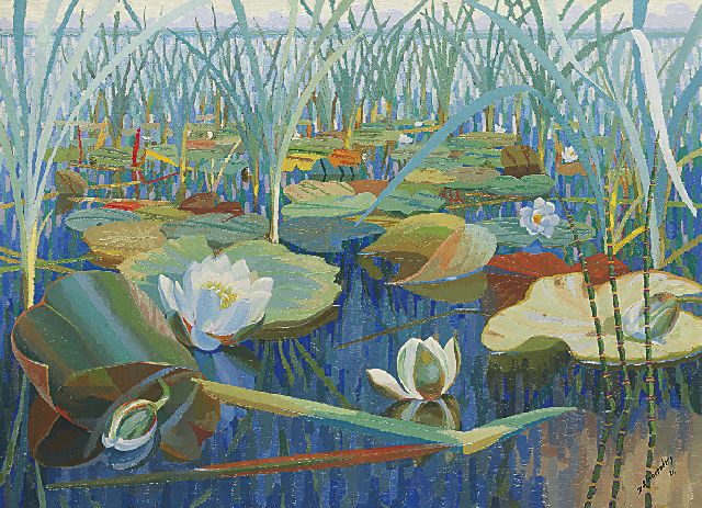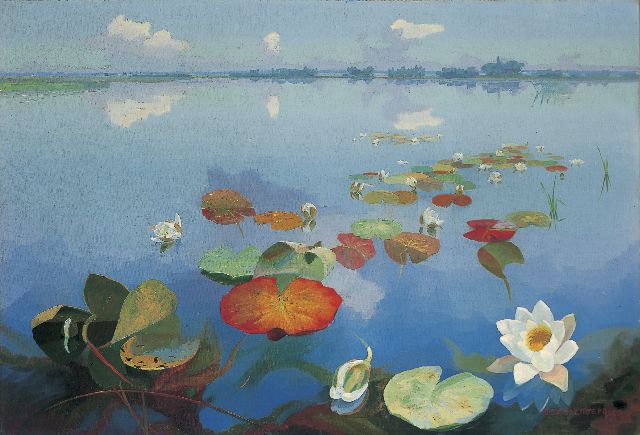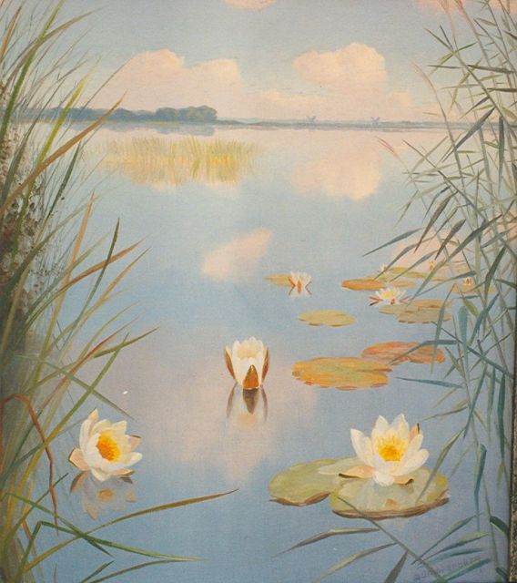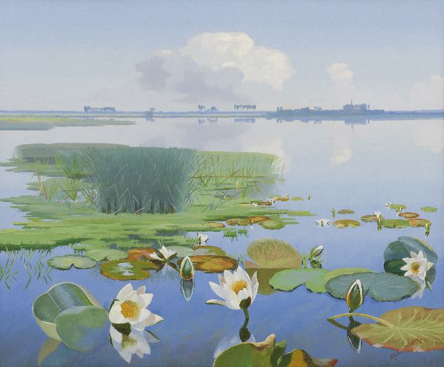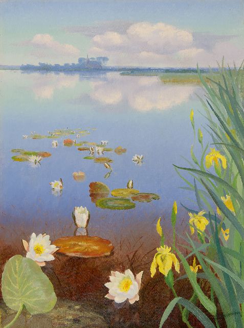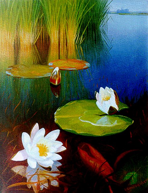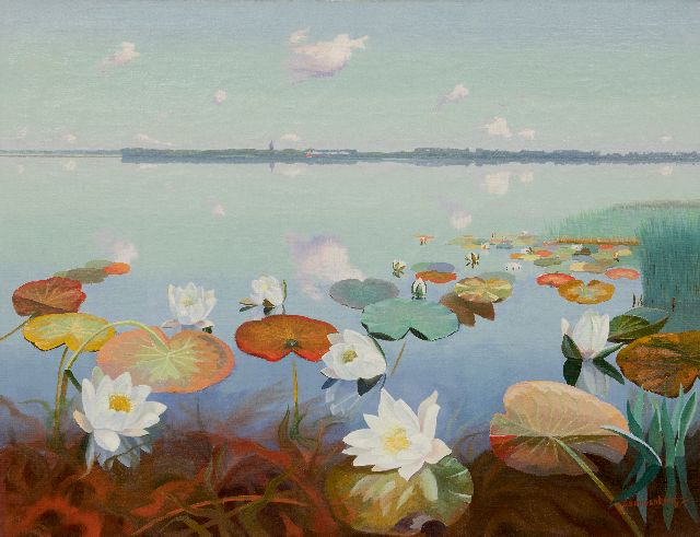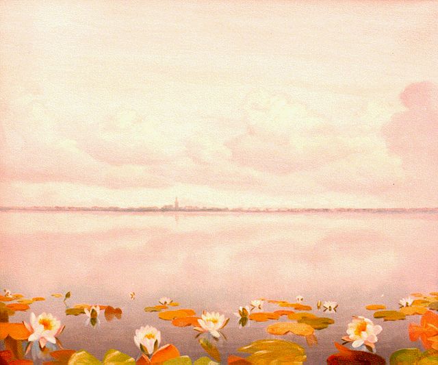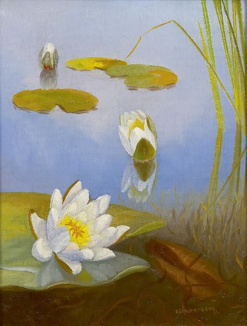 Dirk Smorenberg, geboren in 1883, is een van de weinige art-deco schilders van Nederland. Zijn weergave van de Hollandse waterlelieplassen was heel anders dan die van schilders die dit onderwerp eerder op het doek zetten. Haagse Schoolschilders deden het met aandacht voor de stemming in snelle penseelstreken en groenbruine tinten, terwijl Smorenberg rond 1910 in zijn voorstellingen experimenteerde met gestileerde vormen, geringe diepte en frisse, heldere kleuren in schakeringen van groen, blauw, lila en soms rood. Aanvankelijk viel zijn werk niet zo in de smaak bij het publiek, dat het te vlak, gevoelloos en zonder emotie geschilderd vond. Al gauw echter ontstond waardering toen de art-deco stijl in de mode raakte. Smorenberg was een onafhankelijk en origineel kunstenaar. Zo maakte hij voor veel van zijn schilderijen bijzondere, handgesneden houten lijsten. Naast de bekende waterlelies schilderde hij ook stillevens, een enkel stadsgezicht en portretten.