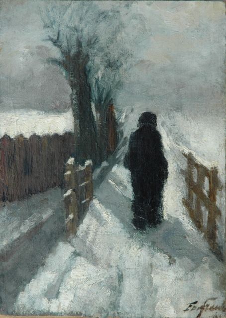 Eduard Frankfort, geboren in Meppel, studeerde aan de academies van Amsterdam en Antwerpen. Zijn vroege oeuvre bestaat grotendeels uit bijbelverhalen en scènes uit het Joodse religieuze leven. Later schilderde hij genretaferelen, landschappen en portretten. Frankforts werk kenmerkt zich door een donker kleurenpalet en brede penseelstreken. Amsterdam was vanaf zijn studententijd zijn thuis, maar hij werkte ook elders in Nederland, onder andere in Drenthe en Staphorst. Hij speelde een actieve rol in de Amsterdamse kunstwereld en bekleedde vooraanstaande posities in Arti et Amicitiae. In 1909 wijdde het Stedelijk Museum Amsterdam een tentoonstelling aan zijn oeuvre, die hem talrijke prijzen opleverde.