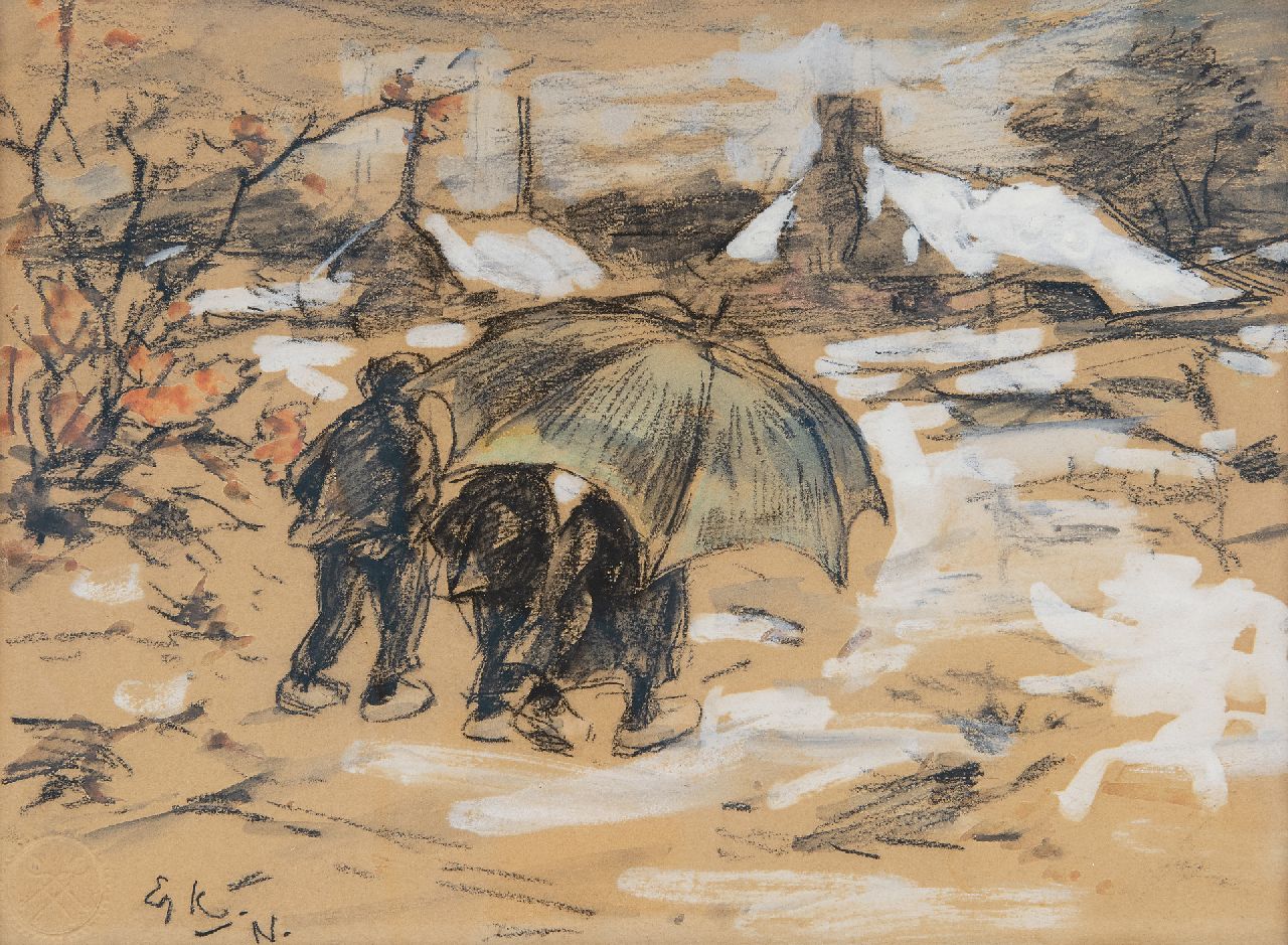 De impressionist Edzard Koning werd in 1869 in Winschoten geboren. Net als zijn broer, Arnold Koning, begon hij in de jaren 80 van de negentiende eeuw met schilderen. Hij heeft de artistieke inslag niet van een vreemde, zijn vader en opa schilderden ook, zij het in hun vrije tijd. In 1891 maakte hij een studiereis naar Parijs waar hij stadstaferelen schilderde. Na de studieperiode ging hij terug naar Den Haag en trok daar graag de natuur in. Hij schilderde voornamelijk landschappen en stadsgezichten in een realistische stijl met een romantische inslag. Edzard was een veelzijdig kunstenaar: hij werkte met olieverf, aquarel en houtskool. Rond 1900 maakte Koning zijn entree in de grafische kunstwereld en vervaardigde litho’s voor de 'Kleine Johannes' van Frederik van Eeden en vlotte aquarellen voor de Verkade-albums.