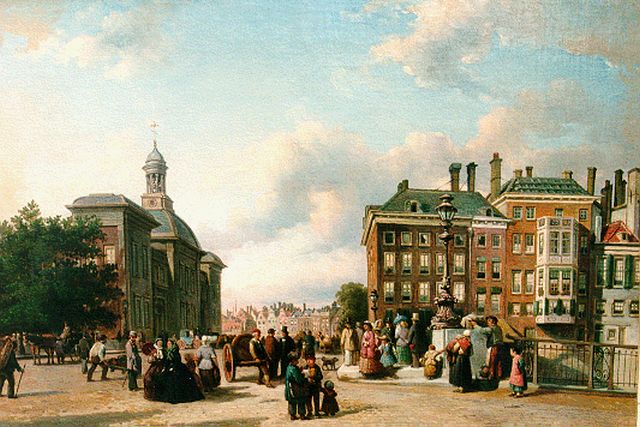 Elias Pieter van Bommel was een leerling van de Rijksacademie van Amsterdam en van de iets oudere Amsterdamse landschapschilder George Andries Roth. Aanvankelijk schilderde Van Bommel onder invloed van zijn leermeester landschappen, later ging hij over op het schilderen van fijn uitgewerkte stadsgezichten met levendige stoffage. Inspiratie deed hij op in steden als Rotterdam, Dordrecht en Amsterdam. Ook maakte hij studiereizen door België, Duitsland, Frankrijk en Italië.