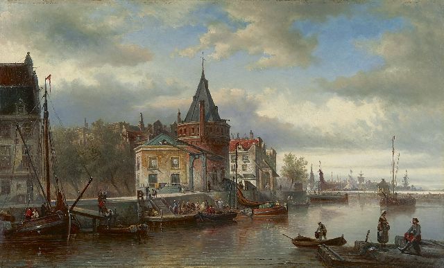 Elias Pieter van Bommel | Gezicht op de Munttoren, Amsterdam, olieverf op doek, 63,3 x 92,7 cm, gesigneerd l.o. en gedateerd 1883