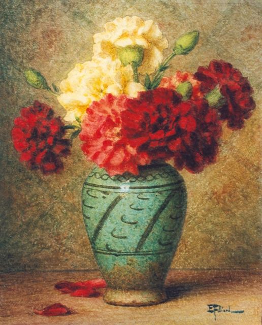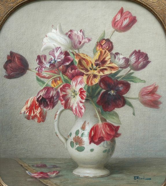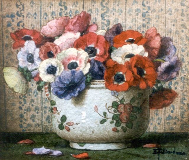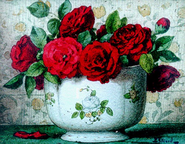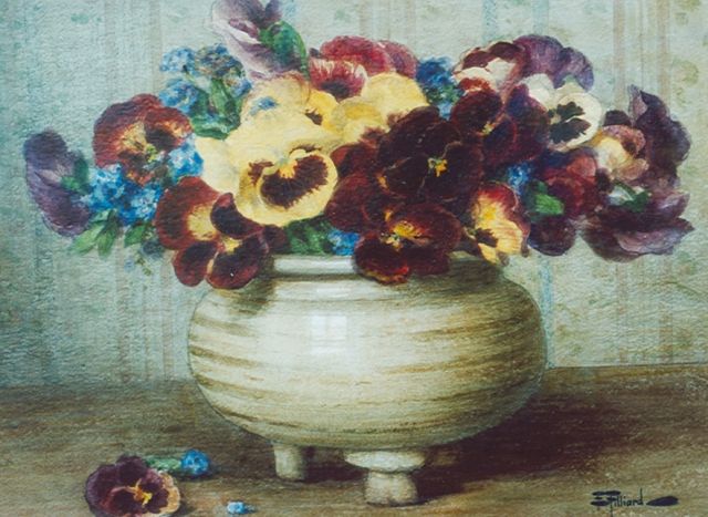 Ernest Filliard was een Frans aquarellist van bloemstillevens in veelal uitgesproken kleuren, geschikt in uiteenlopende soorten vazen en kommen. Hij was een leerling van portretschilder Benoît Molin en woonde en werkte in Chambéry. Filliard was lid van de Société des Artistes Français en werd in 1914 geridderd in het Légion d'honneur, de hoogste en belangrijkste Franse nationale onderscheiding.