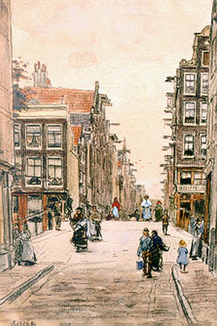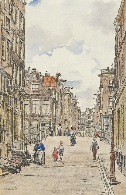 Felicien Bobeldijk | Amsterdams straatgezicht, gemengde techniek op papier, 41,0 x 27,5 cm, gesigneerd l.o.