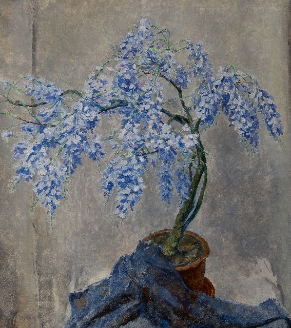 Felicien Bobeldijk | Blauwe regen, olieverf op doek, 100,3 x 90,3 cm, gesigneerd l.o. en verso op etiket