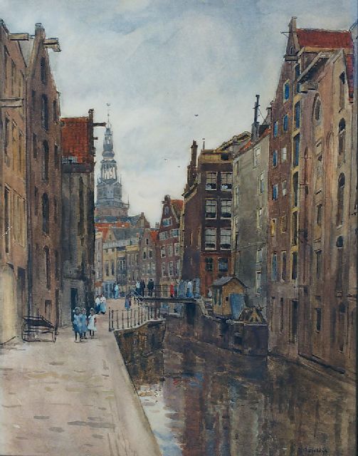 Felicien Bobeldijk | Gezicht op de Wijde Heisteeg vanaf de Heibrug, Amsterdam, olieverf op doek, 60,2 x 80,2 cm, gesigneerd r.o.