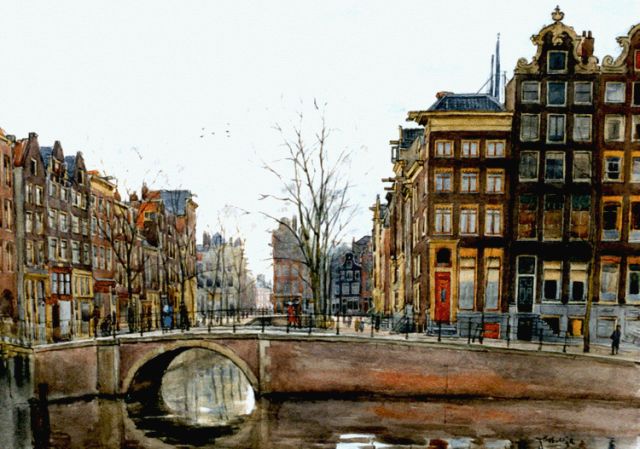 Felicien Bobeldijk | Gezicht op de Leliegracht in Amsterdam, aquarel op papier, 46,3 x 64,5 cm, gesigneerd r.o.
