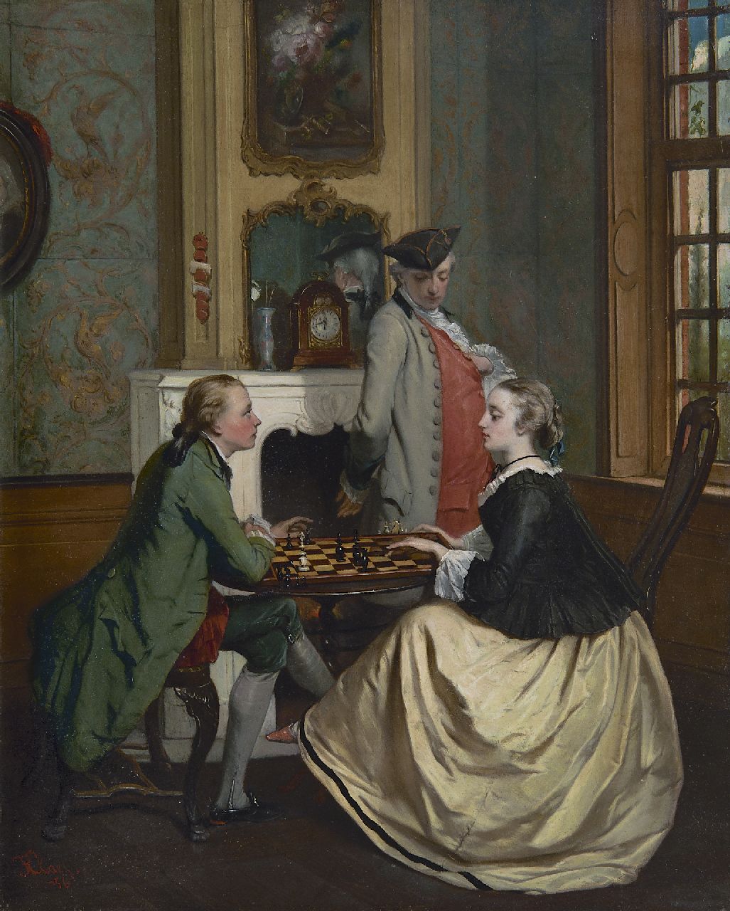 Floris Claes | De schaakspelers, olieverf op paneel, 43,6 x 35,1 cm, gesigneerd l.o. en gedateerd '56