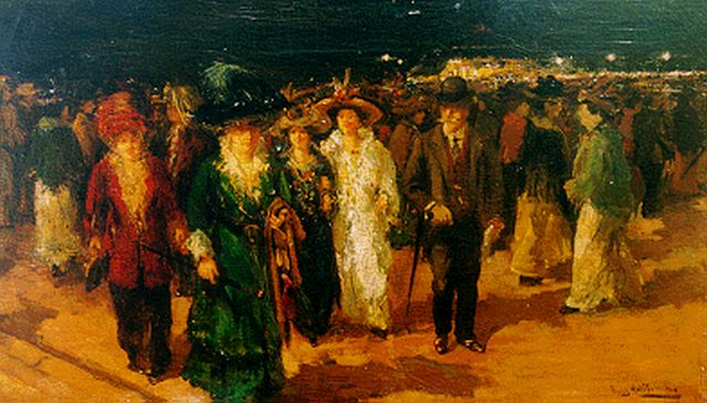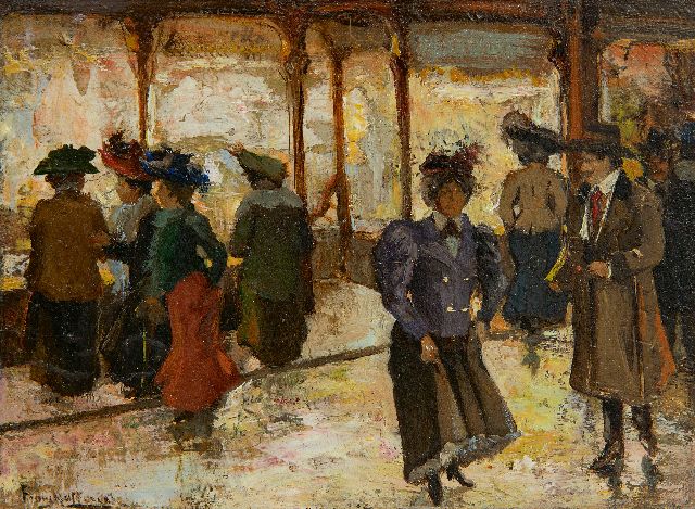 De impressionist Frans Helfferich woonde en werkte het grootste deel van zijn leven in Den Haag. Daar volgde hij een opleiding aan de Haagse akademie en ontwikkelde hij zich tot een schilder van landschappen in de trant van de Haagse School. Opvallend zijn de vlot-impressionistische voorstellingen van het moderne stadsleven in de hofstad, veel 'frivoler' en anders van sfeer dan de stadsportretten van zijn zes jaar oudere stadgenoot Floris Arntzenius. In veel van de winkelstraten die hij schilderde speelt het electrische licht van de etalages, dat rond 1900 zijn intrede deed, een belangrijke rol. Het stond voor het moderne leven en straalde welvaart en luxe uit.