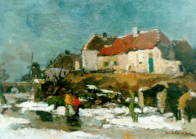 De geboren Amsterdammer Frans Langeveld studeerde scheikunde voordat hij zich geheel toelegde op het schilderen. Hij volgde lessen aan de Rijksnormaalschool in de hoofdstad en was daarna leerling van G.W. Dijsselhof. Aanvankelijk schilderde hij landschappen, veel Amsterdamse stadsgezichten en interieurs. Zijn werk is stevig, robuust en wat ruig van structuur. Zwoegende mensen, actie, beweging en het epische in de natuur trokken hem aan. Vanaf 1903 kwam hij regelmatig in Laren, waar hij zich vestigde en waar hij boereninterieurs met figuren schilderde. Daarbij was hij meer realist dan zijn artistieke collega's.
