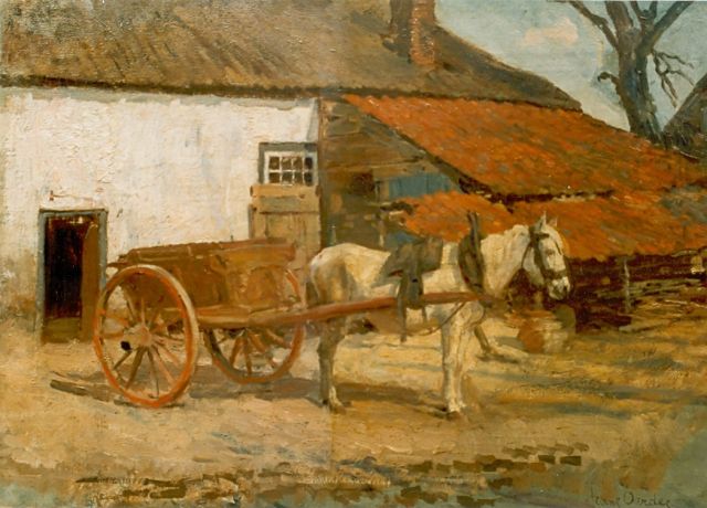 Frans Oerder | Paard en wagen voor een boerderij, olieverf op doek, 50,8 x 70,4 cm, gesigneerd r.o.
