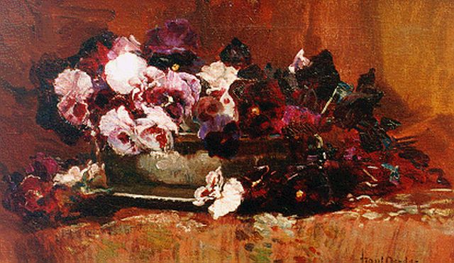 Frans Oerder | Bloemstilleven met viooltjes, olieverf op doek, 30,0 x 50,5 cm, gesigneerd r.o.