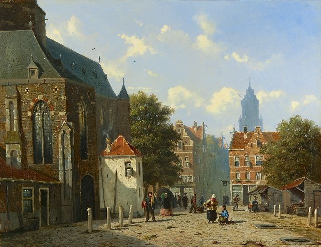 Frederik Roosdorp | Gezicht op een Hollands kerkplein, olieverf op doek, 55,9 x 71,4 cm