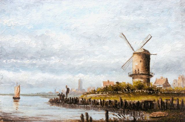 Frederik Roosdorp | Rivierlandschap met molen, Wijk bij Duurstede, olieverf op paneel, 13,1 x 19,9 cm, gesigneerd r.o. en onduidelijk gedateerd 18..9
