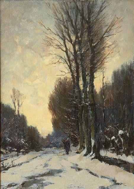 Frits Mondriaan | Besneeuwd bospad met, olieverf op paneel, 37,7 x 26,3 cm, gesigneerd r.o.