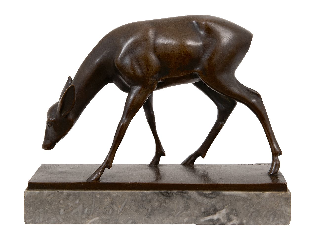 Fritz Paul Zimmer | Grazende ree, brons, 20,5 x 25,0 cm, gesigneerd l.o. op de basis