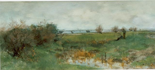 Geo Poggenbeek | Polderlandschap, aquarel op papier, 20,5 x 48,0 cm, gesigneerd l.o.