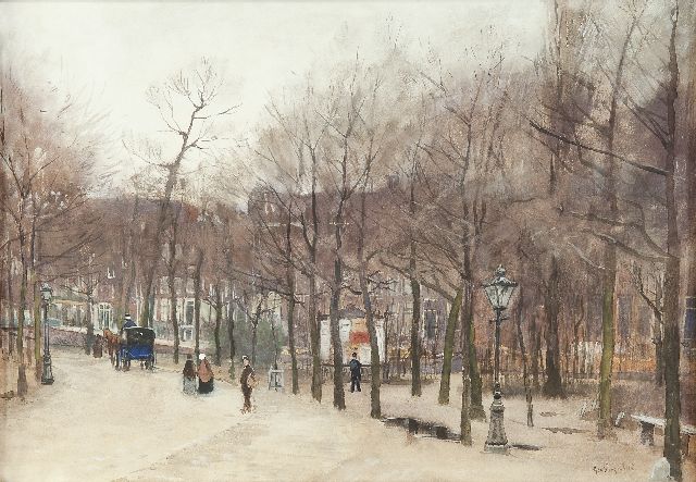 Geo Poggenbeek | Stadsgezicht met figuren, Amsterdam, aquarel op papier, 40,3 x 57,4 cm, gesigneerd r.o.