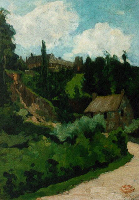 Geo Poggenbeek | Avranches in Normandië, olieverf op paneel, 34,7 x 24,7 cm, gesigneerd r.o. met stempel