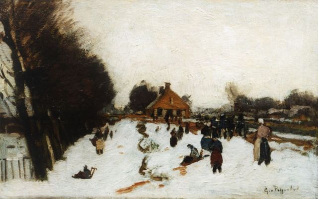 Geo Poggenbeek | Sneeuwpret, olieverf op doek op schildersboard, 21,1 x 33,0 cm, gesigneerd r.o.