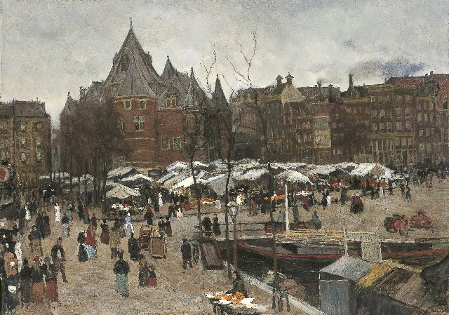 Geo Poggenbeek | Marktdag op de Nieuwmarkt, Amsterdam, olieverf op doek, 53,9 x 76,6 cm, gesigneerd l.o.