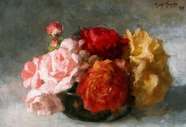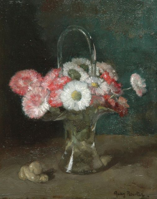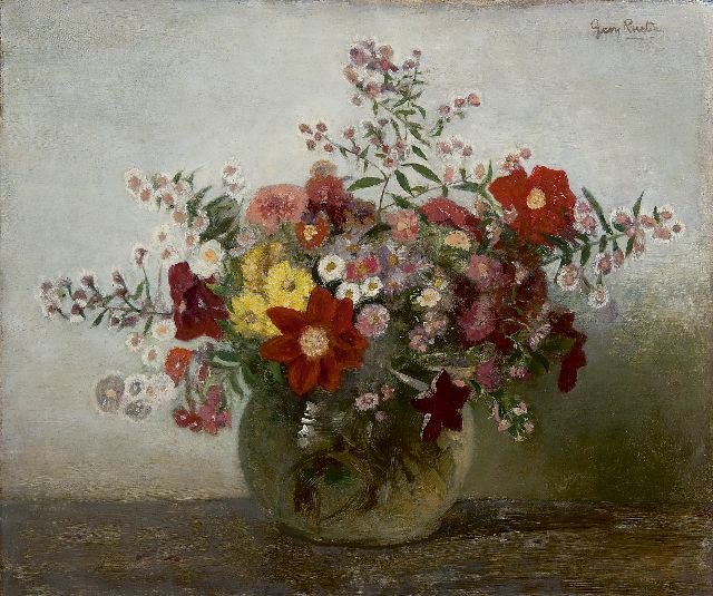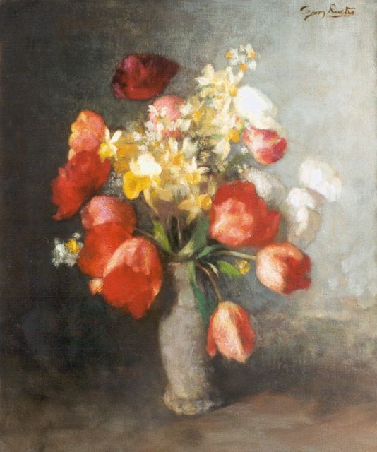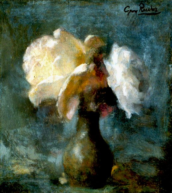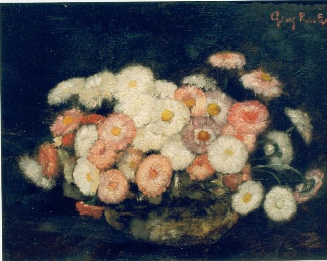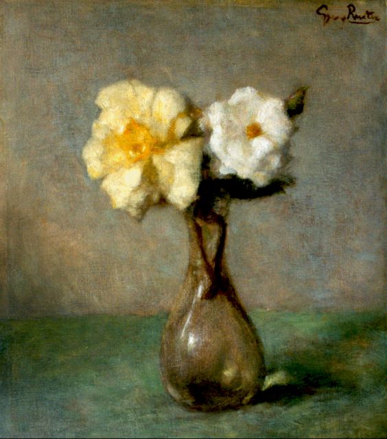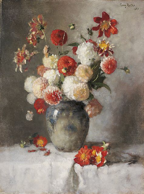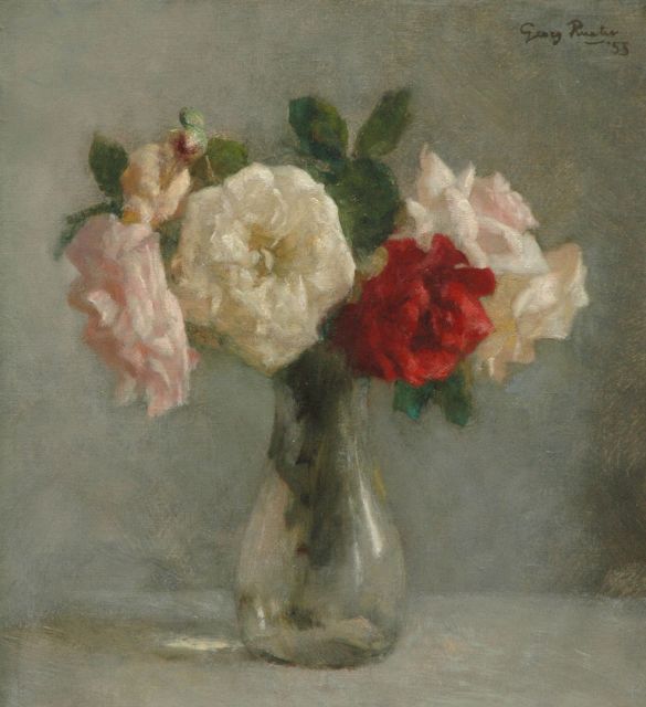 Georg Rueter kreeg zijn opleiding aan de Rijksacademie in Amsterdam, o.a. van August Allebé. Hij muntte uit in het tekenen en schilderen van portretten en bloemstillevens en behoorde aan het begin van deze eeuw tot de toonaangevende schilders in ons land, zoals onder anderen ook Breitner, Gestel, Maks en Sluijters dat waren. Rueter was ook werkzaam als glasschilder, bekend om zijn ramen van de Nieuwe Kerk in Delft en van de Pieterskerk in Leiden. Daarnaast ontwierp hij ex-libris, postzegels, en boekomslagen.