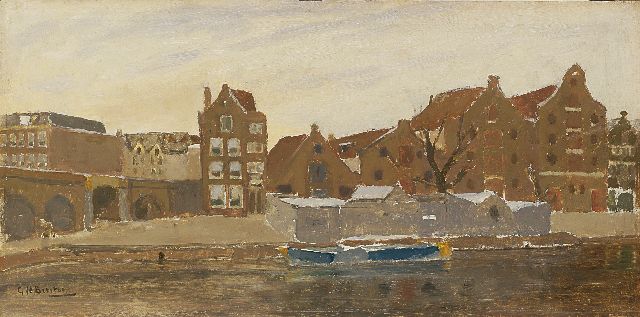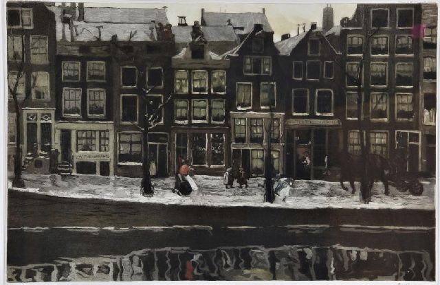 Een Amsterdamse gracht in de sneeuw