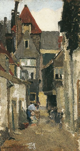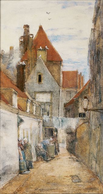 Rotterdams steegje met wasvrouw