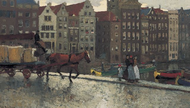 Paard en wagen op de Nieuwe Brug bij het Damrak