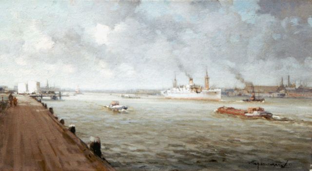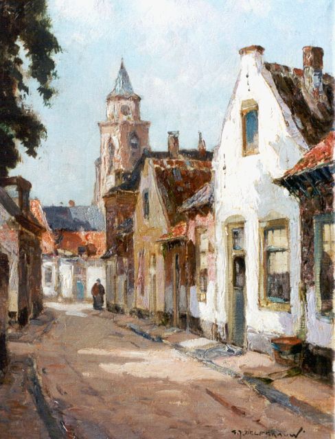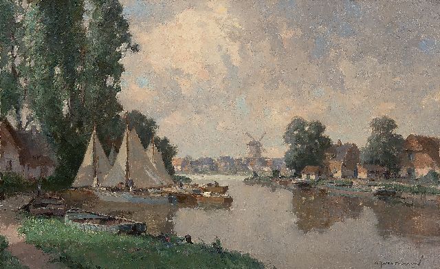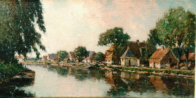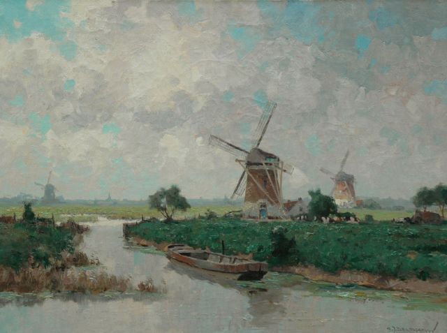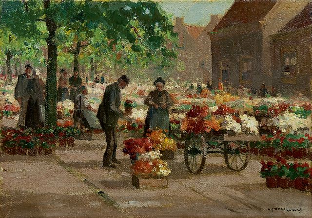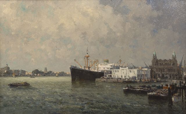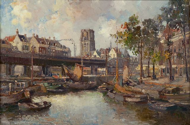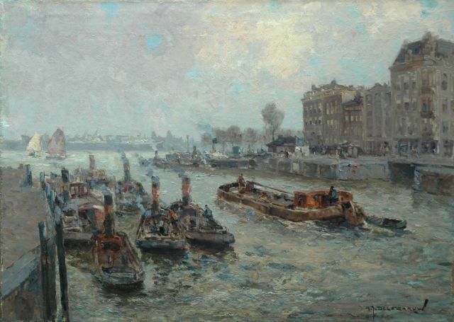 Gerard Delfgaauw groeide op in het waterrijke Westland. Het is dan ook niet vreemd dat het polderlandschap van zijn geboortestreek een belangrijk onderwerp binnen zijn oeuvre is. Hij schilderde veel dorps- en stadsgezichten bij zomer en winter, die in zijn tijd grote aftrek vonden. Daarnaast kreeg hij bekendheid met zijn dynamische voorstellingen van de bedrijvigheid in de Rotterdamse havens. Delfgaauw werkte in een impressionistisch-naturalistische stijl. Vooral de wijze waarop hij het zonlicht en haar reflecties in het water op het doek heeft weten te 'vangen' wordt erg gewaardeerd. Hij vormde zich voornamelijk zelf nadat aanvankelijk een opleiding aan de toenmalige tekenacademie in Den Haag had gevolgd.
