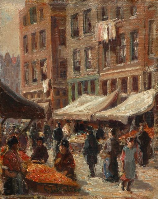 Gerard Johan Staller | Markt in de Amsterdamse joodse buurt, olieverf op doek op paneel, 23,6 x 18,4 cm, gesigneerd r.o. en gedateerd 1912