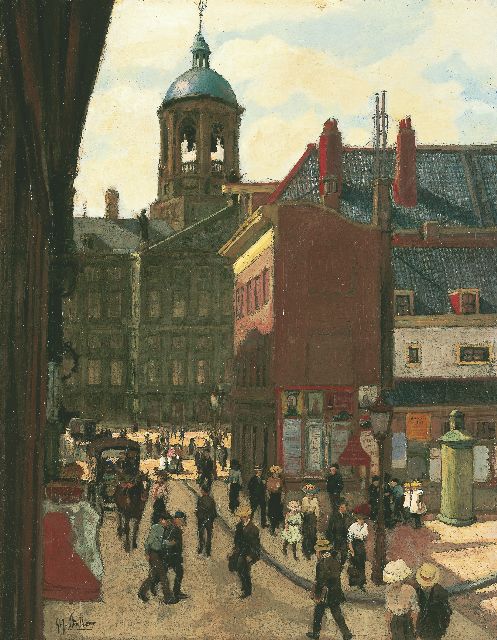 Gerard Johan Staller | De Damstraat en het Koninklijk Paleis in Amsterdam, olieverf op doek, 50,5 x 39,5 cm, gesigneerd l.o.