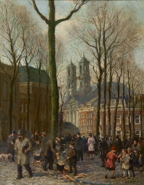 Gerard Johan Staller | De intocht van Sint Nicolaas in Amsterdam, olieverf op doek op board, 29,4 x 25,0 cm, gesigneerd l.o.