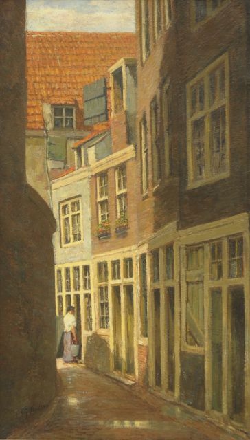 Gerard Johan Staller | Amsterdams straatje, olieverf op paneel, 47,0 x 32,8 cm, gesigneerd r.o.