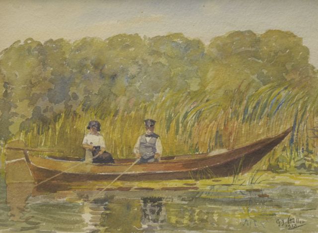 Gerard Johan Staller | Vissend echtpaar in roeiboot, aquarel op papier, 22,4 x 29,9 cm, gesigneerd r.o. en gedateerd 1923