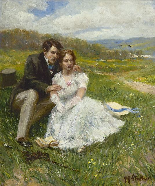Gerard Johan Staller | Verliefd paar op een duintop, olieverf op doek op board, 15,2 x 13,0 cm, gesigneerd r.o.