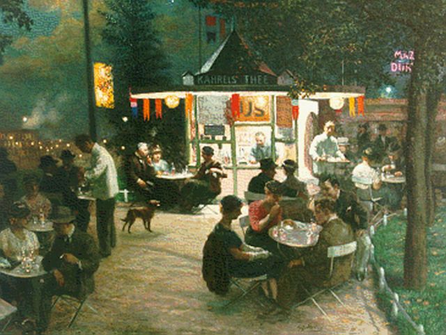 Gerard Johan Staller | Theepaviljoen t.o. Centraal Station Amsterdam, jaren '30, olieverf op doek, 77,0 x 93,0 cm, gesigneerd r.v.h.m.