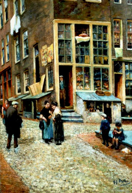 G.J. Staller werd in 1880 in Amsterdam geboren en woonde en werkte vrijwel zijn hele leven in deze stad. Hij kreeg zijn opleiding aan de hoofdstedelijke Rijksacademie en schilderde daarna voornamelijk Amsterdamse stadsgezichten en volkstaferelen in de Joodse buurt rond het Waterlooplein en de Jordaan. Staller werd daarom wel de schilder van het Amsterdams-Joodse volksleven genoemd.