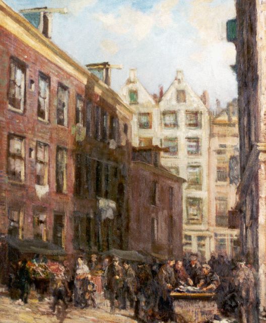 Gerard Johan Staller | Stadsgezicht met marktstalletjes in Amsterdam, olieverf op doek, 79,9 x 65,5 cm